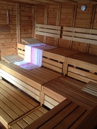 Die Saunakabine bietet Platz für ca. 15 Personen.